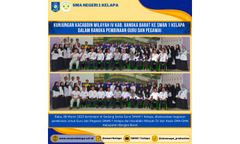 Adanya kunjungan Kepala Cabang Dinas Pendidikan Wilayah IV Kabupaten Bangka Barat ke SMA Negeri 1 Kelapa dalam rangka pembinaan disambut baik oleh Kepala SMA Negeri 1 Kelapa, Rabu (08/03/2023).Kegiatan ini dilaksanakan di Gedung Serbaguna SMA N 1 Kelapa dan dihadiri...