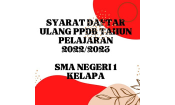 JADWAL PENDAFTARAN ULANG PPDB TAHUN PELAJARAN 2022/2023BAGI CALON PESERTA DIDIK BARU SMA NEGERI 1 KELAPA, DAFTAR ULANG PPDB AKAN DI MULAI TANGGAL 11 - 13 JULI 2022, PUKUL 08.00 - 12.00 WIB DI SMA NEGERI 1 KELAPA, CALON PESERTA DIDIK...