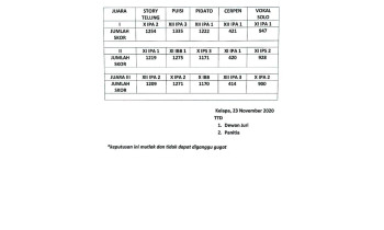 Dalam rangka memperingati Hari Guru Nasional sekaligus HUT PGRI ke 75, SMA Negeri 1 Kelapa menghadirkan lima macam perlombaan yang diikuti oleh peserta didik diantaranya lomba pidato, puisi, cerpen, vokal solo dan story telling.Seluruh kegiatan perlombaan tentunya telah dikondisikan sesuai...