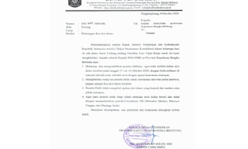 Dinas Pendidikan Provinsi Bangka Belitung mengeluarkan surat edaran terkait larangan siswa SMA/SMK ikut aksi demo penolakan Undang-undang Omnibus Law Cipta Kerja yang akan dilaksanakan serentak pada 13 hingga 16 Oktober 2020.Di mana dalam surat tersebut meminta orang tua, guru peserta didik untuk memantau aktivitas putra...